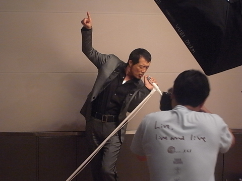 いよいよ撮影スタート! 今回のシチュエーションは〈矢沢さんとマイク・スタンド〉のみ。どんな撮影になるのか楽しみです!