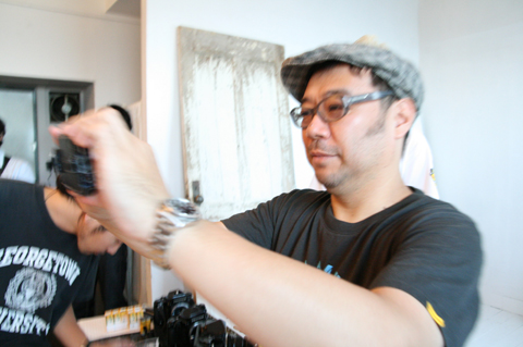 撮影前に、indigo jam unitからのお願いで、携帯カメラで撮影する平間さん。なかなか見られない貴重な光景です。巨匠に携帯で撮影させるとは、かなりの大物? 怖いもの知らず?なメンバー(笑)。
