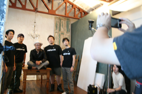indigo jam unitはお揃いのステージ衣装のTシャツに着替え、撮影開始!