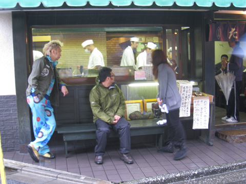 今回は年末年始の〈めでタイ〉ポスターということで、東京たいやき御三家のひとつ、四谷のたいやき屋〈わかば〉さんにて撮影が行われました。ガラス越しに見える焼き場の光景と匂いに食欲がそそられます。