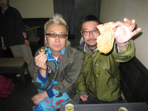 早速、ディレクターの箭内さんとカメラマン平間さんをはじめスタッフ一同ご賞味! 「美味しい!」「あんこが多い!」と全員で連呼。ちなみにたいやきは、男性は頭から、女性は尻尾から食べるらしいです。