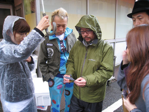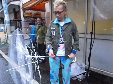 風は強くなかったのですが、なぜか箭内さんの傘だけが風に煽られボロボロに……。箭内さんも思わず苦笑い。