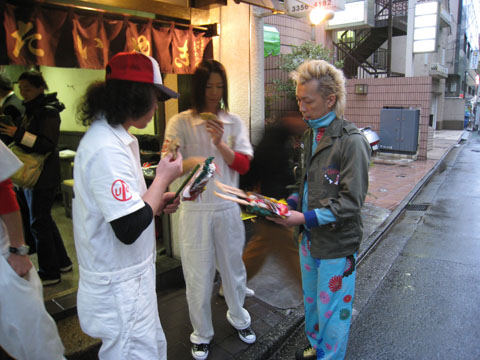 次は、先ほどメッセージを書いていただいた熊手を持っての撮影です。それにしても手島さんとEBIさんの食いっぷりがハンパない。2個目もそろそろ無くなりそうです。