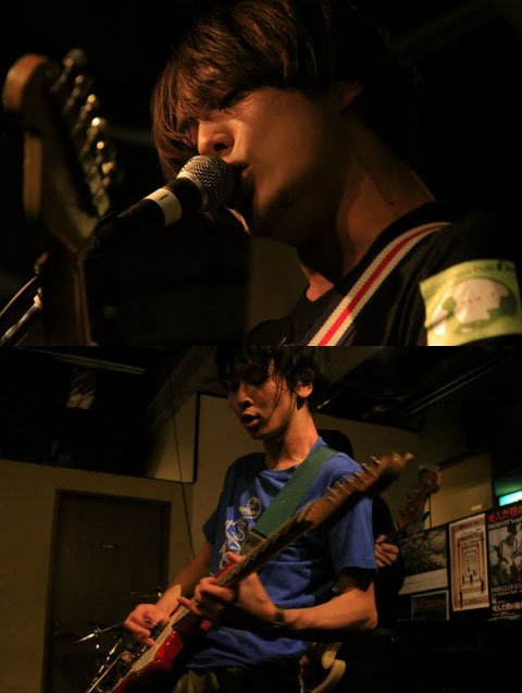 記念すべきアニヴァーサリー・ライヴの先陣を切ったのはFAR FRANCE。6Fのバー・スペースに〈大体このへんまでがステージ〉といったアバウトさでセッティングされた機材を満員の観客が取り囲む。ベースの松島昴の脱退が控えていることだし、現メンバーでのステージが観られるのはこれが最後か……と感慨にふけっていると、英真也(ヴォーカル)、畠山健嗣(ギター)、高橋豚汁(ドラムス)と共に現れたのは、元nhhmbaseのギタリスト、入井昇。後にオフィシャルサイトで知ったのだが、そのプレイ同様にエキセントリックすぎる方法ですでにバンドを去っていた松島の代役として、入井に白羽の矢が立った模様である。