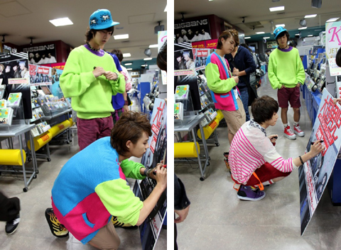 その後、試聴コーナーのパネルにメンバー全員で直筆サインを書いてくれました!