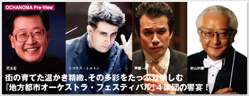 街がじっくり育ててきた、温かい響きの多彩──日本のプロ・オーケストラの優れた実力を体感していただきたい。日本各地の街で活躍する楽団が年に一回、東京・錦糸町のすみだトリフォニーホールへ代わる代わる登場する春の風物詩『地方都市オーケストラ・フェスティバル』は、1998年から開催され続けてきた。日本のオーケストラの実力が目をみはる勢いで磨かれてきた近年、この企画によって各地の楽団の現在進行形が関東圏にもコンスタントに紹介されてきた意義も大きい。楽団のほうでも、美しく豊かな響きをもつホールでの演奏機会を楽しみにも励みにもしているとは各地の取材でよく耳にする。ところが、昨年のフェスティバルは東日本大震災のためやむなく開催を断念。1年を経て、昨年参加予定だった5団体のうち4団体があらためて参加してくれるのは、復興への困難いまだ多い被災地を強く案じつつも感慨深い。