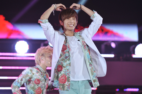 自己紹介やMCを挟んで、“BOYFRIEND”“LOVE STYLE”が飛び出し、韓国デビュー曲と最新曲が続けて楽しめる豪華なセットリストに、わくわくした方も多かったのでは? 日本デビュー・シングルの“Be my shine~君を離さない~”の前には、末っ子のミヌが「教えてあげますね~」と楽曲のポイントである〈フレンド・キッス〉の振り付けをレクチャーしたり、リーダーのドンヒョンが「これからも、BOYFRIEND、そしてK-POPをたくさん愛してくださいね」と話したあとに、メンバーが頭の上に手を置いて腕で大きなハートマーク作ったりと、とにかくキュートなステージを展開。