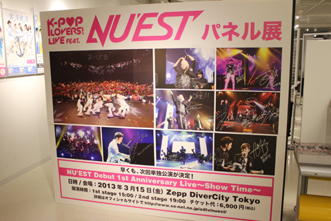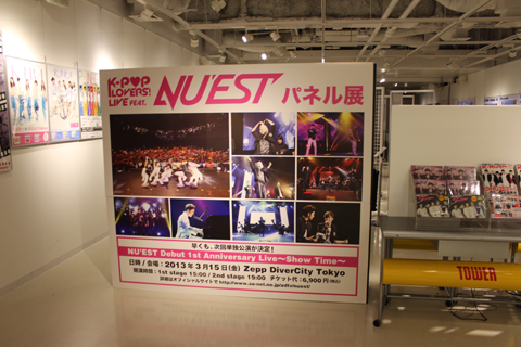 昨年タワーレコードとAATJが主催するライヴ・イヴェント〈K-POP LOVERS! LIVE〉の名を冠し、単独公演を行った韓国出身の5人組ボーイズ・グループ、NU’EST。2012年度末に行ったタワーレコードのオリジナル企画〈K-POP LOVERS! AWARDS〉の新人部門では堂々の2位をマークするなど、高い注目を集めている彼らが、現在タワーレコード渋谷店にて行っている〈K-POP LOVERS! SPECIAL SHOP〉に来店しました。ちなみに、サインを入れる前のパネルはこちらです。