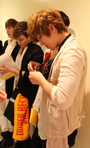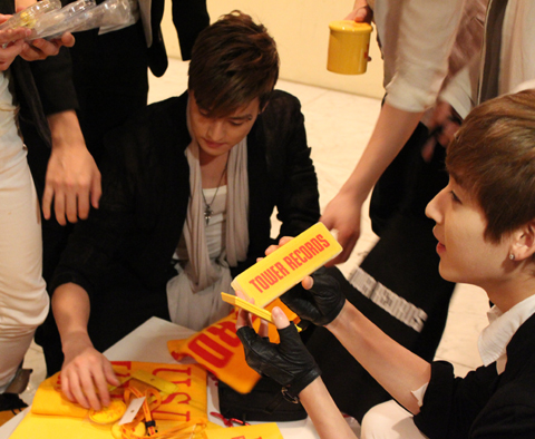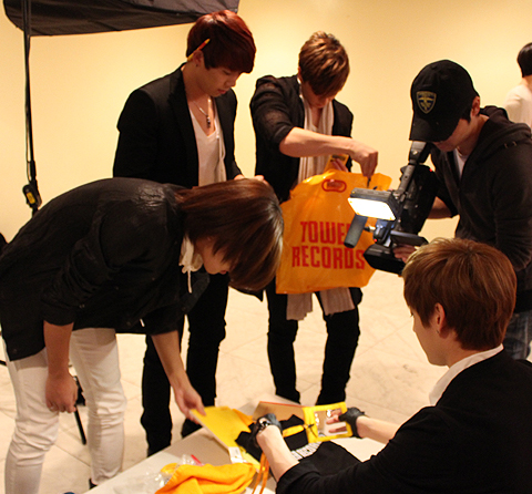 お気に入りのグッズを持って、ポラ&チェキの撮影も行いました。このなかの一部は現在タワレコ渋谷で開催中の〈K-POP LOVERS! SPECIAL SHOP〉に飾ってありますので、ぜひチェックを。そして、グッズを選んだ理由は、インタビューその1でご紹介していますのでこちらもぜひ。U-KISSのみなさん、ありがとうございました!