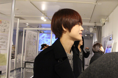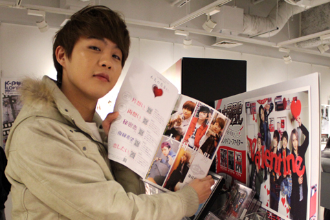 会場をぐるりと回ったインジュンくんは再び入り口に戻って、自分たちが表紙を飾っている雑誌「K-RUSH」を熟読。カメラを向けると、自分たちのページを開いてこちらに見せてくれました。