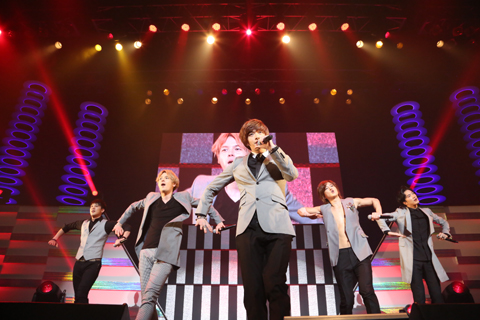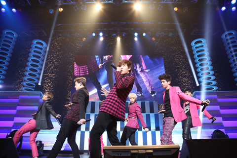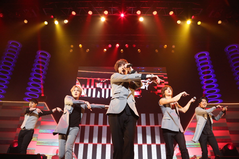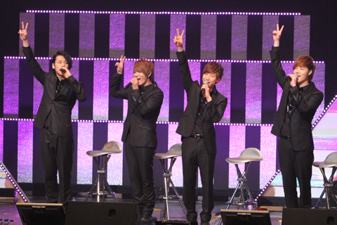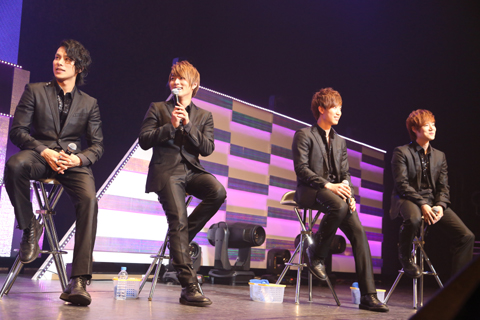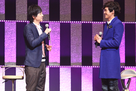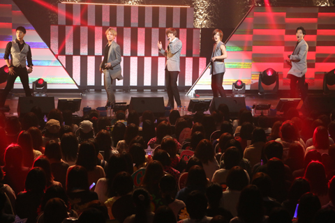 そして、この4月からMnetの宣伝広報大使として活躍しているCODE-Vがステージへ。「1st mission CODE-V を解読せよ」「いざ出陣! CODE-V」「2nd mission 出動せよ CODE-V」と、日本プレデビュー時から多くのオリジナル番組が放送され、Mnetの韓国エンターテインメント展にもライヴゲストとして多数出演している彼らは、日本に住んで1年半近くということもあり、日本語がペラペラ。これまでの番組の映像を振り返りつつ、日本のギャグを織り交ぜながら繰り広げられる軽快なトークに、会場は終始笑いに包まれていました。