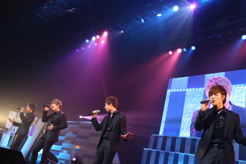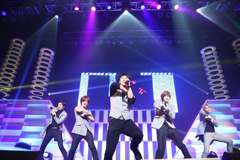 3組目は、Mnet Japanのオリジナル番組として高い人気を誇る「K-POP ZONE」(毎週月曜18:00~19:00)で、現在MCを担当しているキム・ジニョプ。切ない歌声が印象的なバラード“君が行く”と、柔らかな雰囲気のミディアム・チューン“パリの春”の2曲をパフォーマンスしました。1曲目の“君が行く”を歌っているときは足が震えるほど緊張したという彼ですが、「K-POP ZONE」についてコン・テユに聞かれると、「MCを務めるのが初めてで本当に緊張しました。カメラの前で話すということも大変でした。でも、いまは以前に比べると慣れてきました。最近は野外での撮影もあるのですが、たくさんの方が見物にきてくださるので、緊張しますね」とコメント。曲と曲の間には、キム・ジニョプとディレクターが選んだ映像も会場のなかでオンエアされ、質問をふられると時折日本語の単語を混ぜて話す彼の姿にキュンとした方もいたのでは?