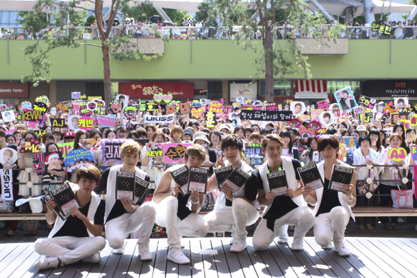 7月24日に日本セカンド・アルバム『Inside of Me』をリリースしたU-KISSが、同作の発売を記念したイベントを、9月1日に東京ドームシティ ラクーアガーデンステージにて開催。舞台上では、8月11日の大阪に続いて、タワーレコード新宿店に設置していた〈応援メッセージ用ノート〉のなかから選ばれたメッセージをメンバーに届けるスペシャル企画が行われました。