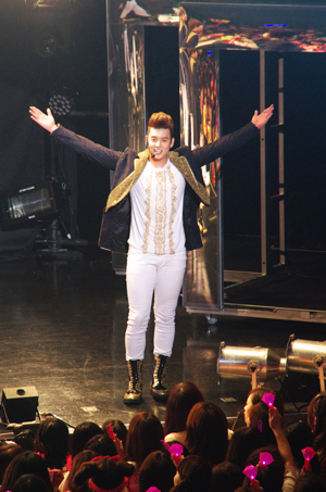 ライヴのスタートまでステージと客席を遮っていた白幕は、開始とともに『Inside of Me』の世界へと一気に惹きこむための演出だったのだろう。幕が左右に瞬く間に剥がされ、オープニング・ムービーが流れはじめたとき、その先に起こることへの期待に胸が高鳴った人も多かったはず。徐々に進んでいく映像を見ていると、終盤で舞台後方のモニターの中央部分がせり出しメンバーが登場、手にしていた花を客席に投げ、オーディエンスのボルテージがグンと上がったところで、“ALONE”へ。〈孤独〉がテーマという“ALONE”の妖しげなイントロ、どんどんと力強さを増していくビートは、セットリストが持つストーリーの導入としては十分すぎるほどの破壊力を放っていた。続く“Forbidden Love”をよりしなやかでセクシーに表現したかと思えば、“Shut Up!!”は7人の息が合った群舞で力強さと男らしい姿をアピール。挨拶代わりにしては十分すぎるほど贅沢なダンス曲が続き、ライヴならではの〈Inside of Me〉の世界へと誘っていく。
