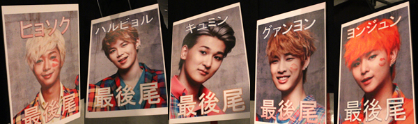 〈KISS会〉のときにスタッフが掲げていたメンバー別ボード、ヒョソク、グァンヨン、ヨンジュンの3人は1回目の段階でキスマークが入りだったこと、みなさんは気づきましたか? その後、キュミンは回を重ねるごとにキスマークを増やしていき、気がついたらキスマークだらけに……。
