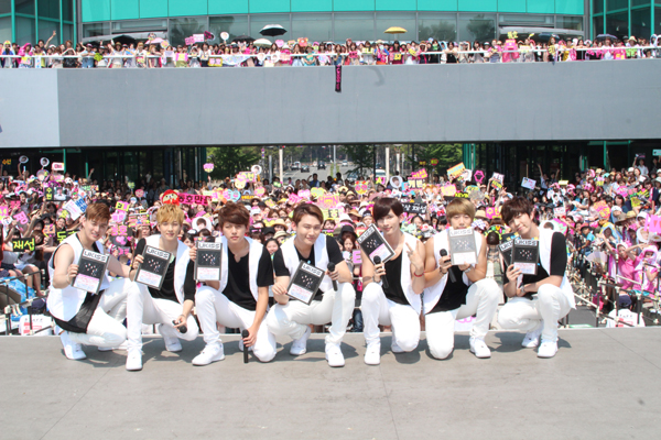 7月24日に日本セカンド・アルバム『Inside of Me』をリリースしたU-KISSが、同作の発売を記念したイベントを8月11日に大阪・南港ATC 海辺のステージで開催。舞台上では、タワーレコードの店舗などに設置していた〈応援メッセージ用ノート〉のなかから選ばれたメッセージをメンバーに届けるというスペシャル企画が行われました。