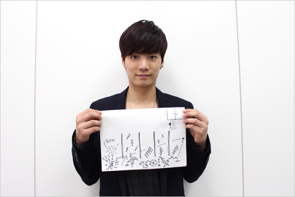 レン「まず向かって左上はセルカイベント。今回の2か月半のなかで、たくさんのファンのみなさんと会うことができたイベントなので、すごく記憶に残っています。こういうイベントは初めてだから、とても緊張しましたが、ファンのみなさんがたくさん話してくれたので、緊張が和らぎました。その隣はライヴ。僕たちのカッコいい姿を見せることができて、ファンのみなさんにも会うことができて、嬉しかったです。左下に書いてある、ごはんの部分は手羽先のイラストです!」